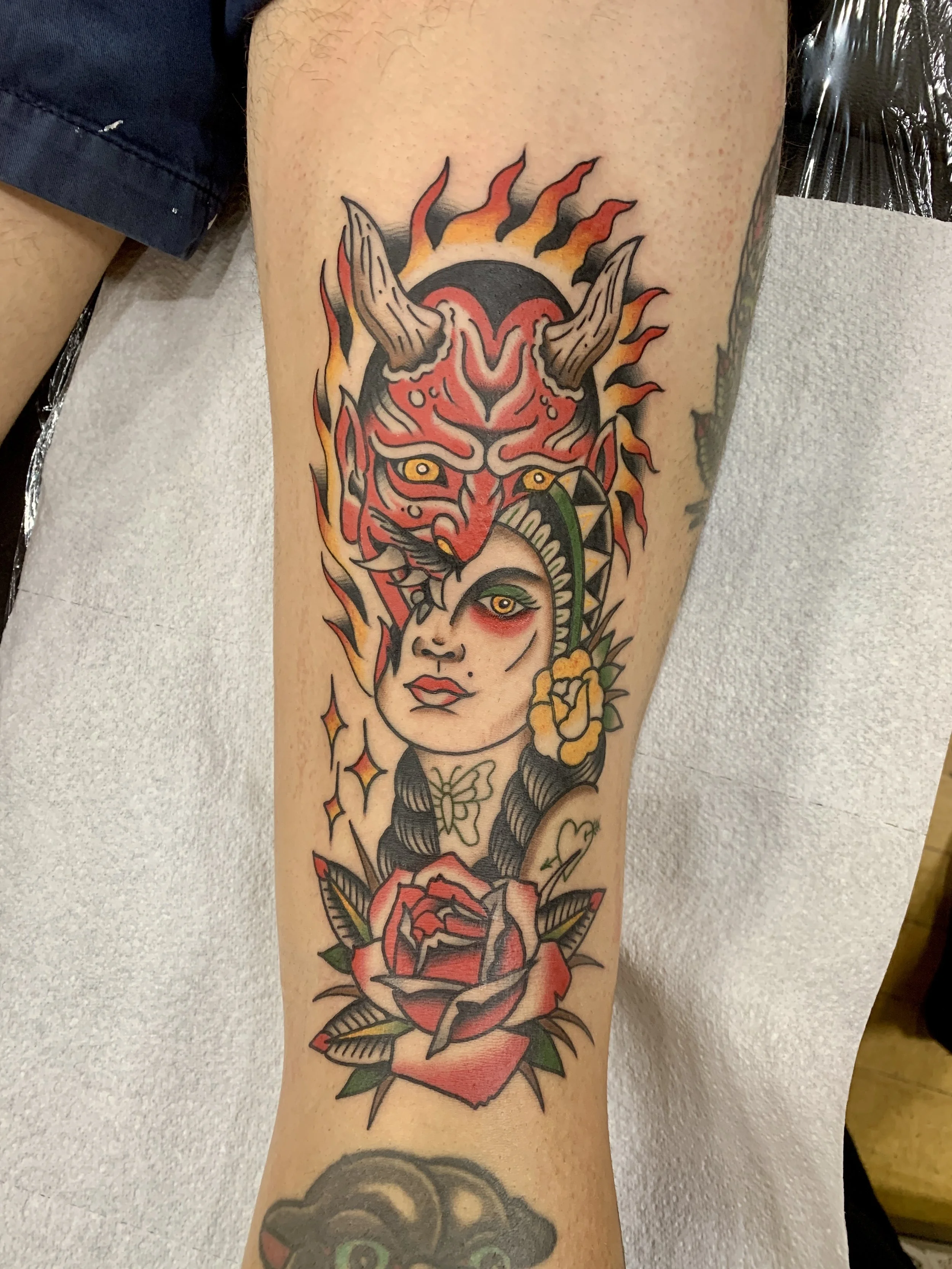 Bold lines, bright colours, lots of black shading. Powerful and simple, truly timeless tattooing. This is the most honest reflection of what good tattooing can be. There is nowhere to hide and every mark is deliberate and calculated. As ancient as time, as modern as tomorrow.
